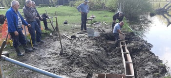 Het terug aanwerken en herstellen van de trap verzetten we naar later als de waterstand wat lager is.